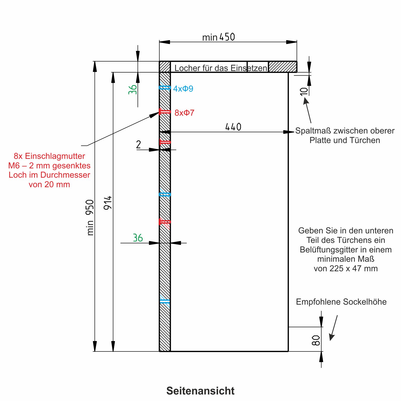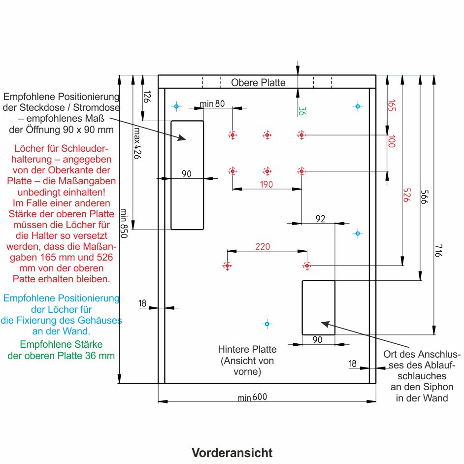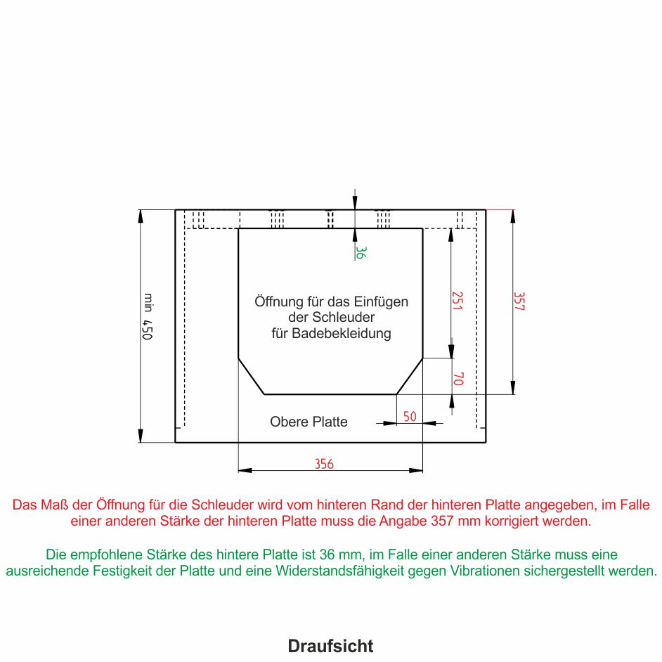 Eingebaute Schleuder mit Abwasseranschluss