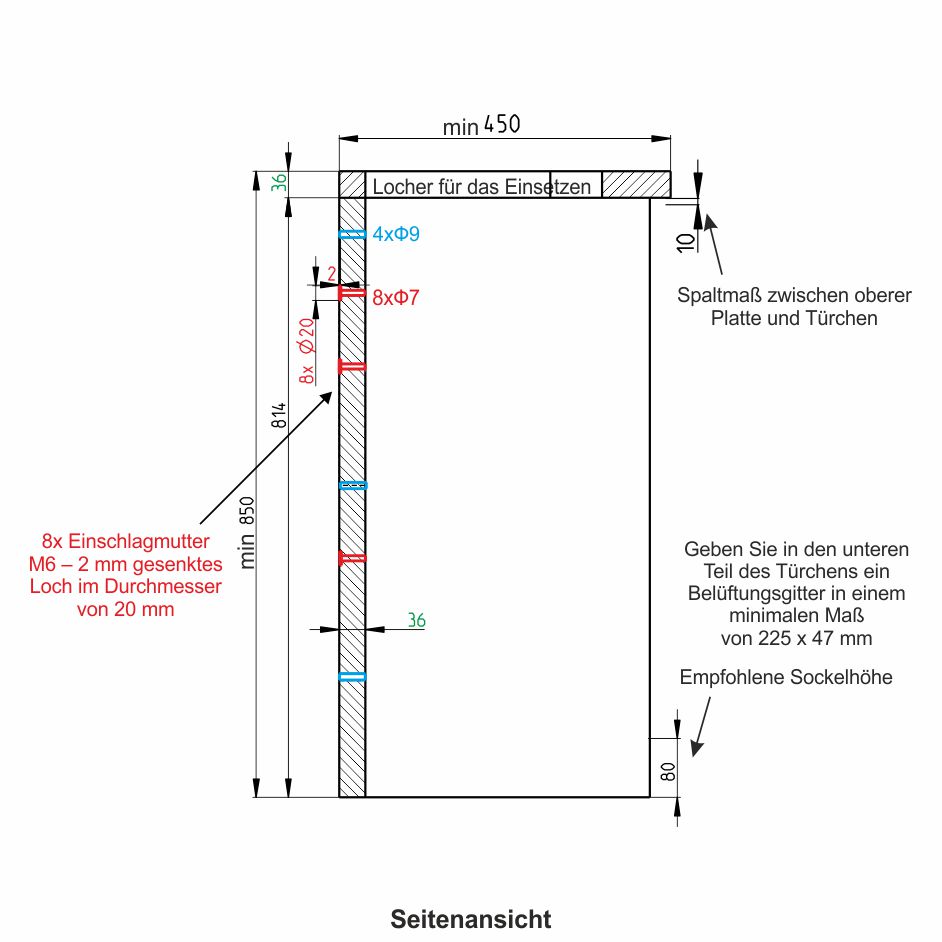- Außenmaße: 350 x 300 x 555 mm (Breite x Tiefe x Höhe)